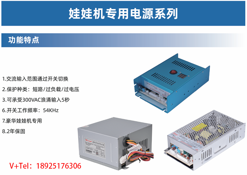 游乐设备电源常见于大型游戏机、抓娃娃机、彩票机、弹珠机、捞鱼机等场景,输出电压多为5V、12V、24V或48V,功率范围从几十瓦到数百瓦不等。例如,三路输出开关电源(如5V/12V/24V组合)广泛用于娃娃机和礼品机,额定功率可达60W至600W